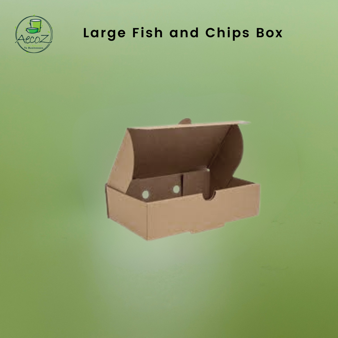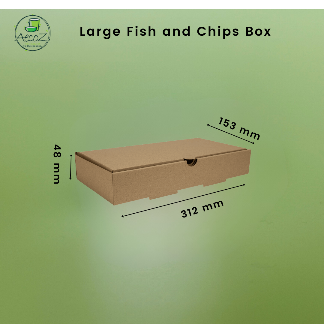 The Large Brown Fish & Chips Box offers a generously sized, eco-friendly packaging solution designed for hearty portions of fish, chips, burgers, wraps, or mixed fast food meals. Made from premium kraft paperboard, it is both sturdy and grease-resistant, ensuring your food stays fresh, crisp, and securely contained.