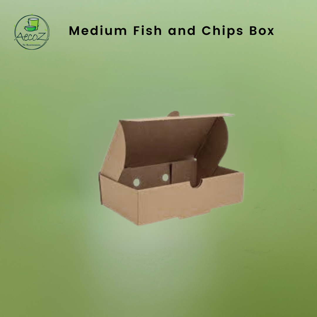 The Medium Brown Fish & Chips Box is a durable and eco-conscious takeaway solution, ideal for serving larger portions of fish, chips, burgers, wraps, and more. Made from premium kraft paperboard, it is designed to handle hot, saucy, or greasy foods while maintaining structural integrity.